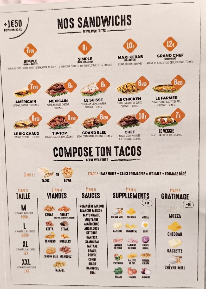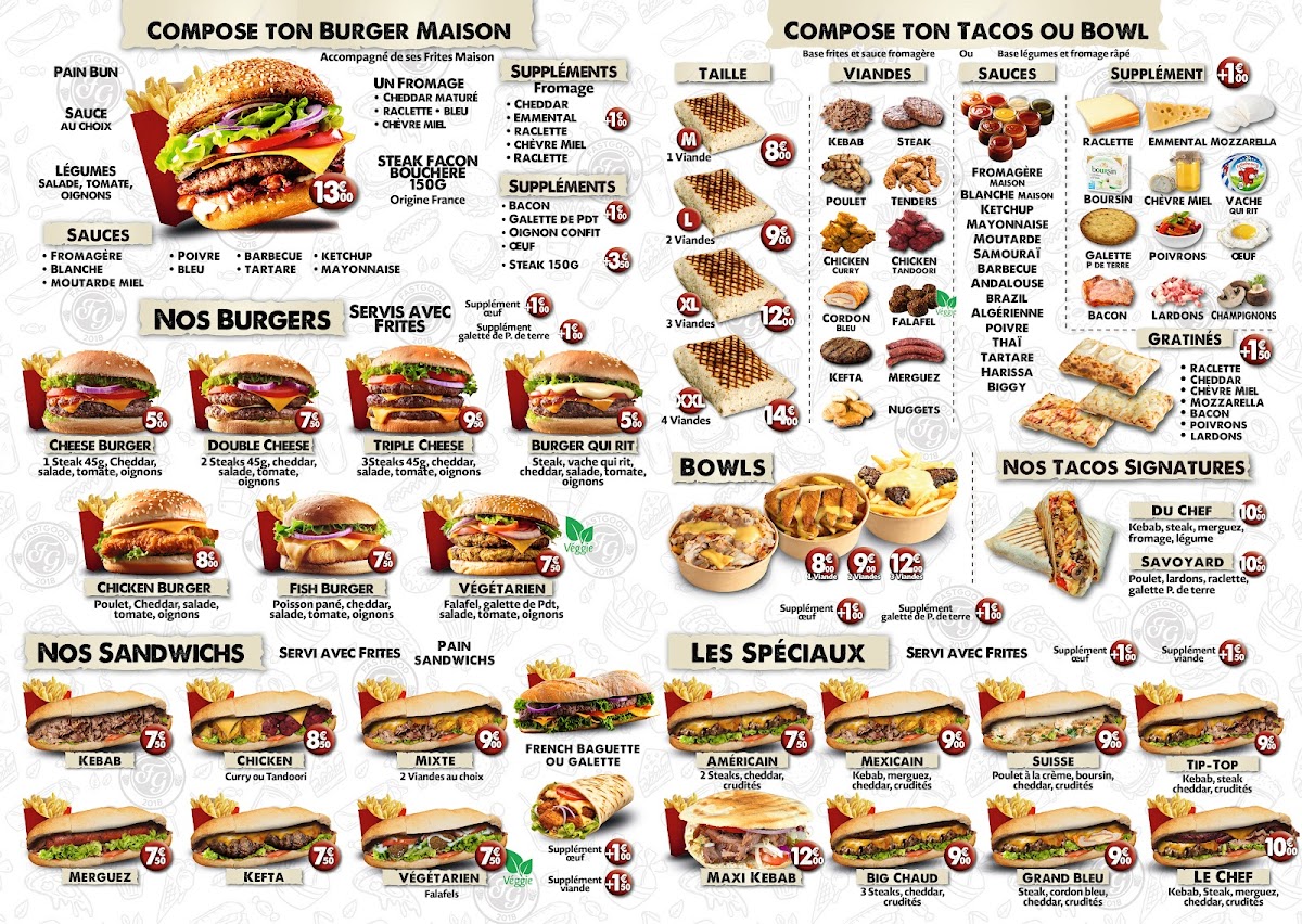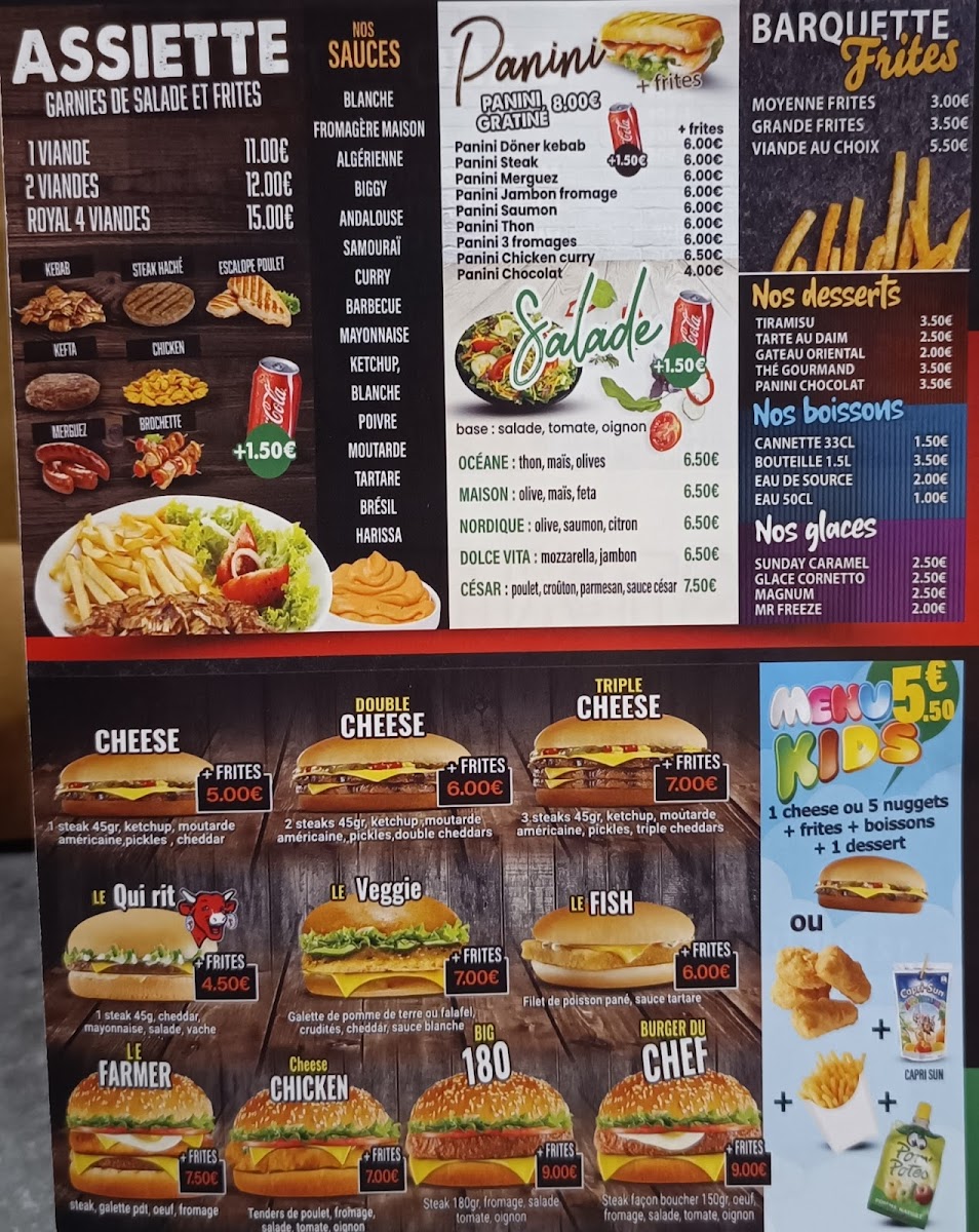 Paninis & Frites - Gannat, located on 18 Av. De La République in Gannat, EMEA 03800, is a hidden gem for foodies looking to indulge in mouthwatering paninis and fries. The menu boasts delicious options like the Panini Steak Hachée, served with a generous portion of fries and your choice of sauces for just 12.20. The Panini Köfte is another favorite, a flavorful option accompanied by crispy fries and sauces of your choosing.