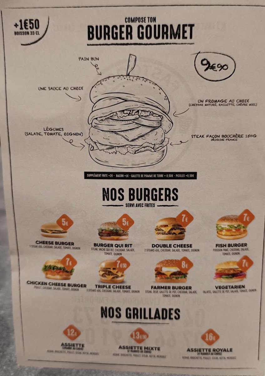 But the treat doesn't stop there, as Paninis & Frites - Gannat also offers a tempting selection of desserts to satisfy your sweet tooth. From the silky Sutlac made with sweet rice milk for 7.60 to the indulgent Balkava crafted with walnuts for 9.20, every dessert here is a delightful experience. The Cœur Fondant and the assortment of Fromages d'Auvergne Cantal AOP, bleu d'Auvergne, and st Nectaire fermier add a touch of sophistication to the menu.